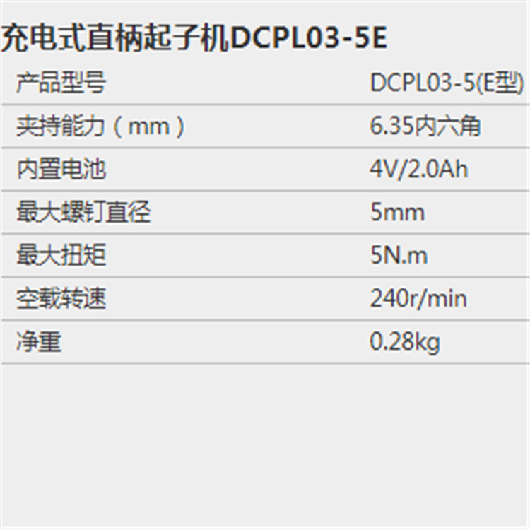 東成充電式直柄起子機DCPL03-5E,產(chǎn)品參數(shù)如圖。