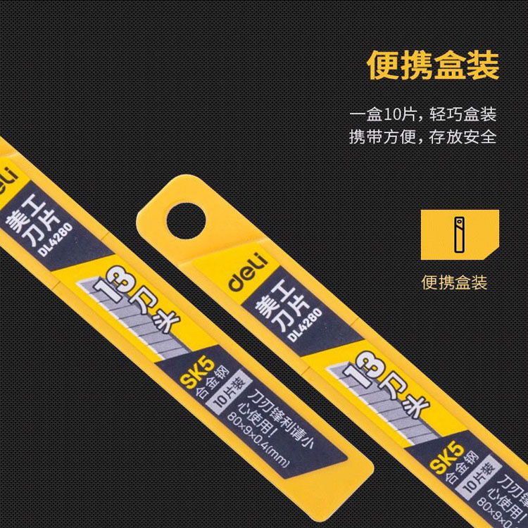 得力(deli) 大號優(yōu)質SK5精鋼美工刀片18mm10片/盒裝DL4281