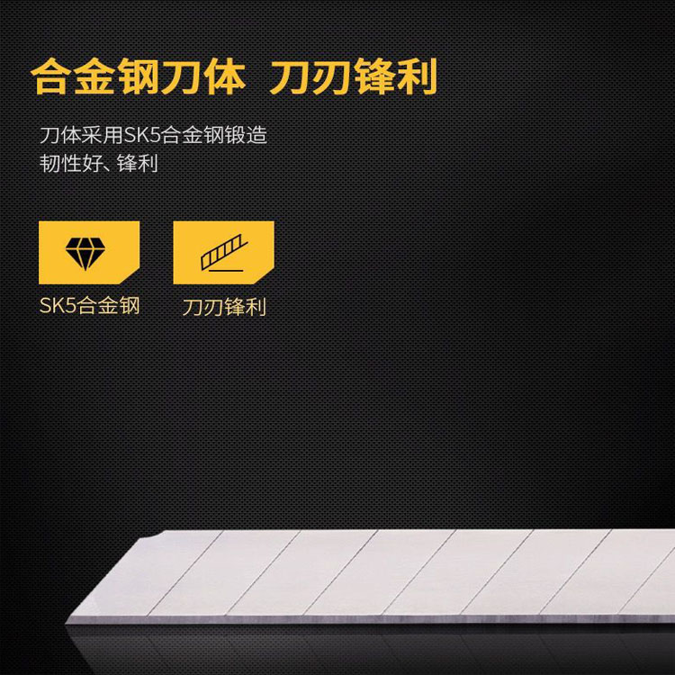 美工刀刀體采用SK5合金鋼鍛造,韌性好,鋒利