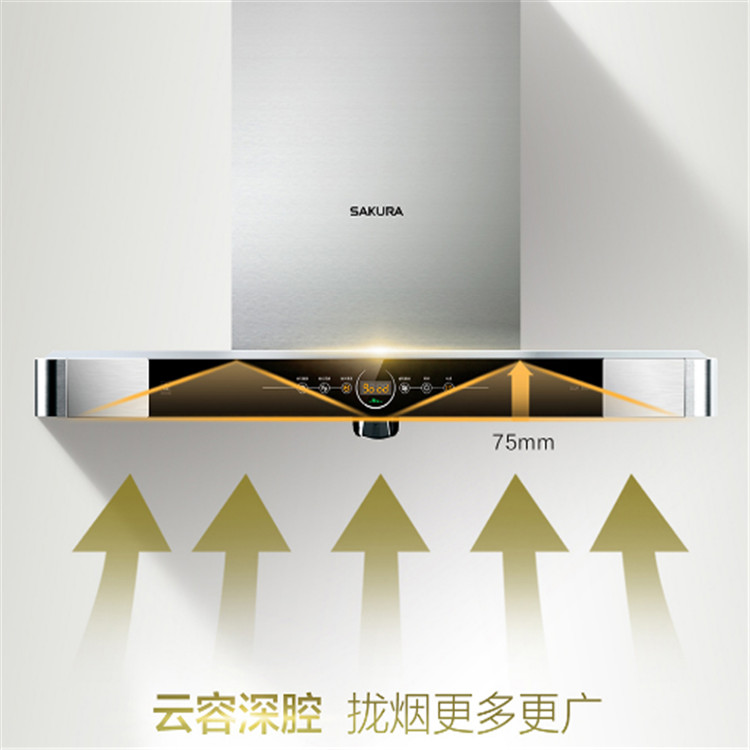 櫻花SCR-T801 雙炫風2.0吸油煙機大吸力家用廚房排煙抽油煙機深大集煙腔產生的強力負壓,有效的將油煙控制在腔體內
