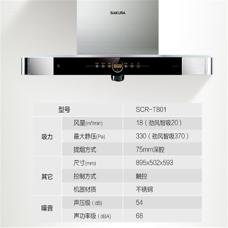 櫻花SCR-T801 雙炫風2.0吸油煙機大吸力家用廚房排煙抽油煙機全天侯廚房空氣管理,營造安全健康廚房新環(huán)境