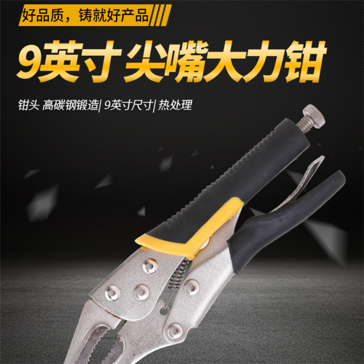得力工具大力鉗9寸尖嘴大力鉗多功能鉗子萬用固定工業(yè)級大力鉗子