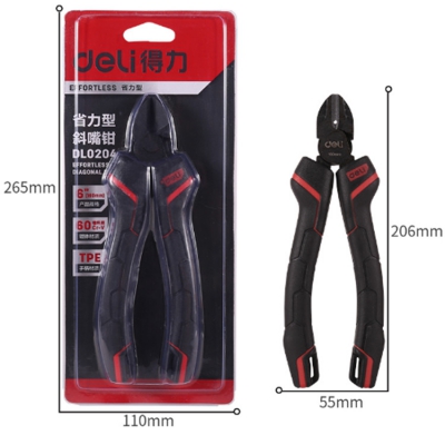 得力6寸省力型斜嘴鉗斜口鉗多功能硬度達(dá)到58-62HRC,剪切力強;環(huán)保TPE雙色手柄,外觀專利設(shè)計,舒適防滑。
