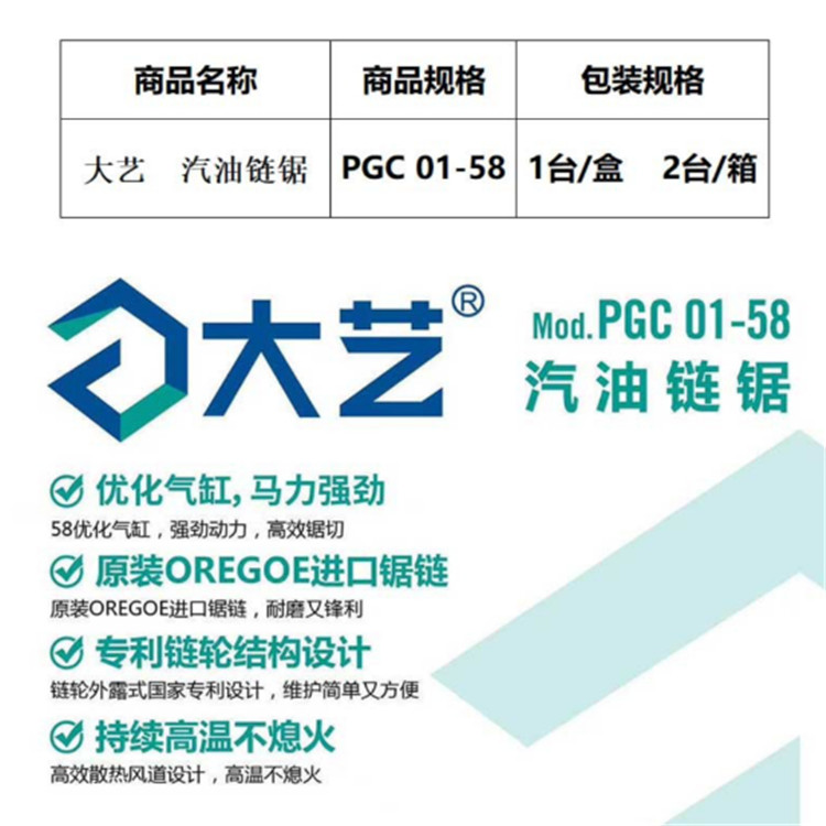 大藝PGC D1-58汽油鏈油鋸耐高溫、抗壓高、結(jié)實(shí)耐用。