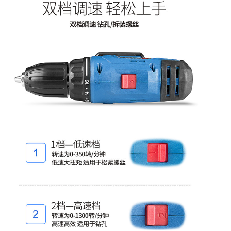 東成充電式起子電鉆擁有無級變速開關,按壓按鈕開始工作,隨著按壓行程增大轉速增快