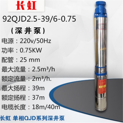 長(zhǎng)虹 單相QJD系列深井泵耐高溫、抗壓高、結(jié)實(shí)耐用。