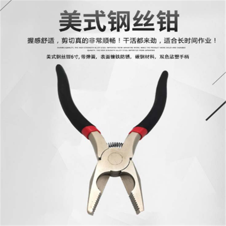 宏寶美式鋼絲鉗碳鋼(表面鎳鐵防銹)美式鋼絲鉗6寸,帶彈簧,表面鎳鐵防銹,碳