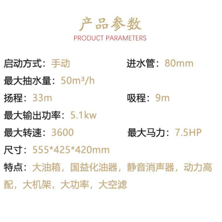 井用取水、農(nóng)田遠(yuǎn)距離輸水、園林大面積,噴灌、消防用水、挖藕、養(yǎng)殖業(yè)等。