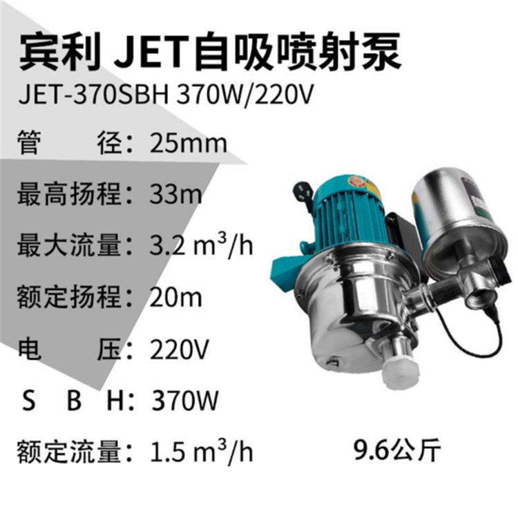 賓利 JET不銹鋼變頻自吸噴射泵 370W動力強(qiáng)勁、性能穩(wěn)定、品質(zhì)認(rèn)證。