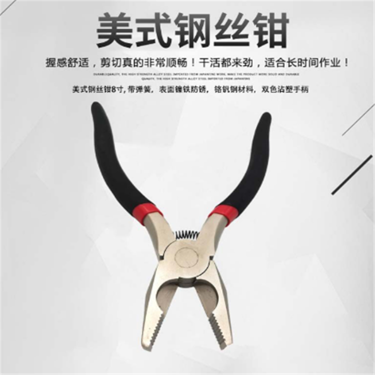 宏寶美式鋼絲鉗鉻釩鋼(表面鎳鐵防銹)鉗體鉻釩鋼鍛造,刃口高溫淬火,剪切鋒