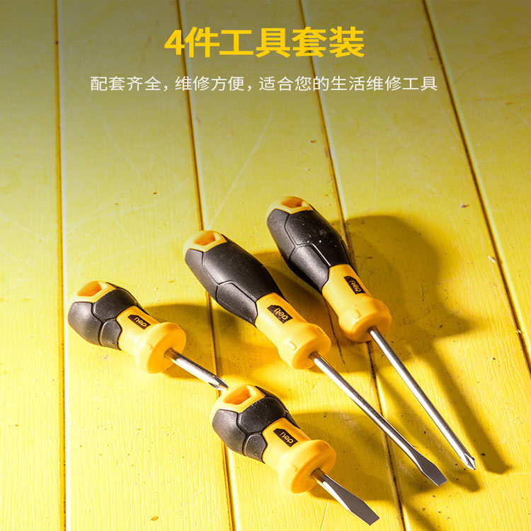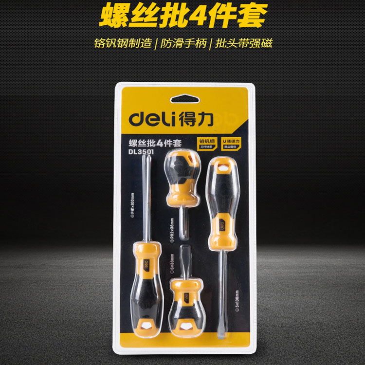得力工具螺絲批4件套刀桿鉻釩鋼材質(zhì)刀頭帶磁性螺絲批套裝DL3501