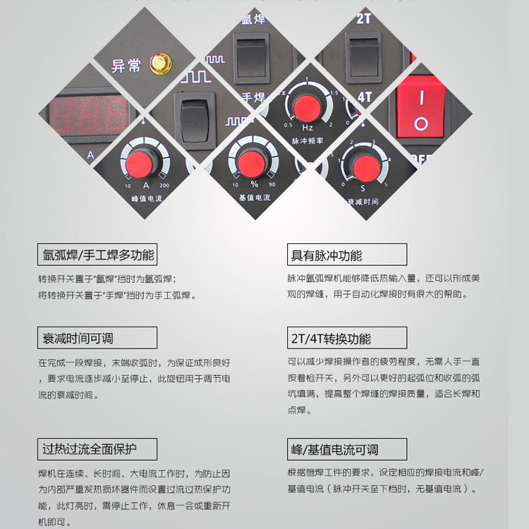 焊機(jī)具有脈沖功能 衰減時(shí)間可調(diào) 電流數(shù)字化顯示