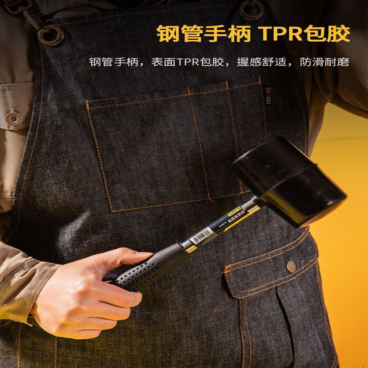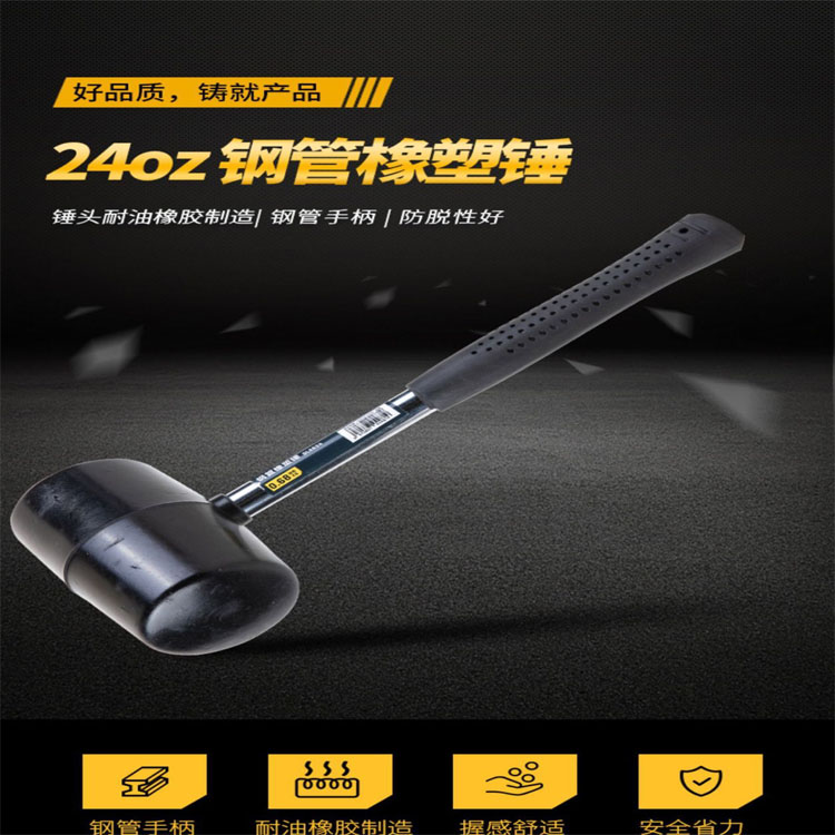 橡膠錘子采用鋼管手柄,表面TPR包膠,握感舒適