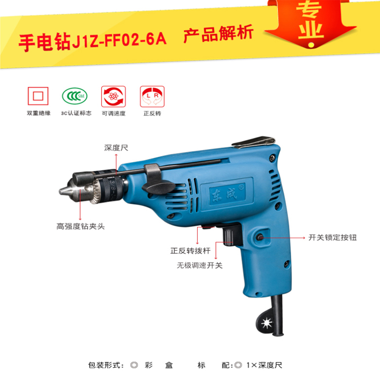 東成手電鉆J1Z-FF02-6A金屬鉆夾頭穩(wěn)固不脫落,高強(qiáng)度精鋼打造