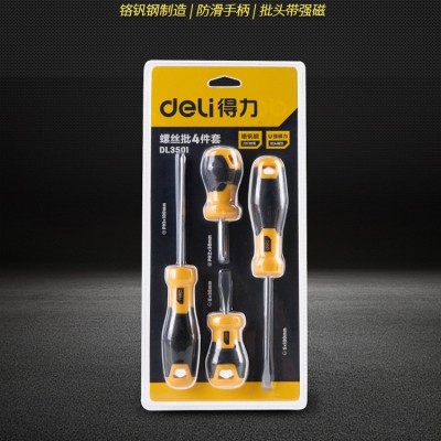 得力工具螺絲批4件套刀桿鉻釩鋼材質(zhì)刀頭帶磁性螺絲批套裝DL3501