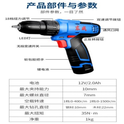 東成充電式起子電鉆2000mAh大電池 空載續(xù)航長達50分鐘