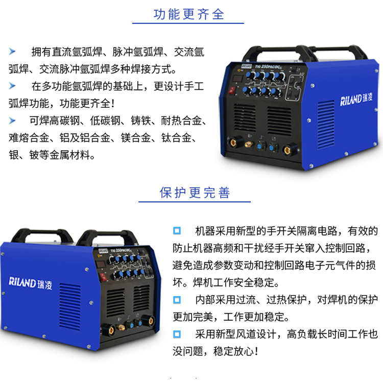 瑞凌TIG-250PAC/DC交直流脈沖氬弧焊機鋁焊機焊鐵銅不銹鋼220V