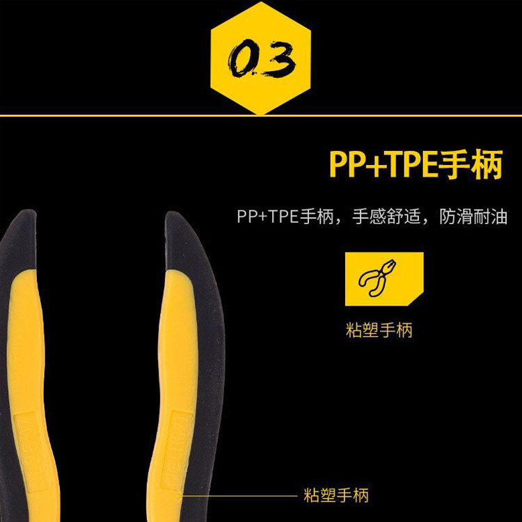剝線鉗采用PP+TPE手柄,手感舒適,防滑耐油
