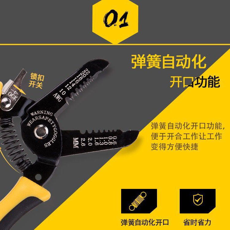 剝線鉗采用高碳鋼材質(zhì),很多檔可以選