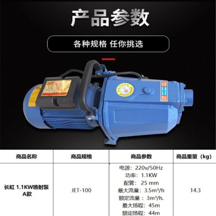 長虹1.1KW噴射泵A款動力強勁、性能穩(wěn)定、品質(zhì)認證。