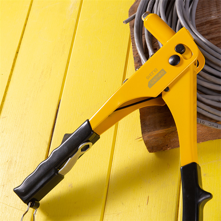 得力單手拉鉚槍采用助力彈簧設(shè)置,省時省力,更便于拉于鉚釘