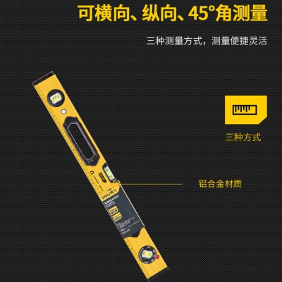 水平尺兩端帶強磁、三種測量方式、180°放大水泡、鋁合金尺身、ABS包膠