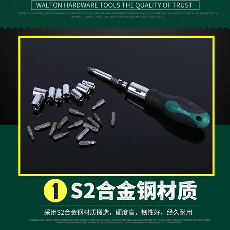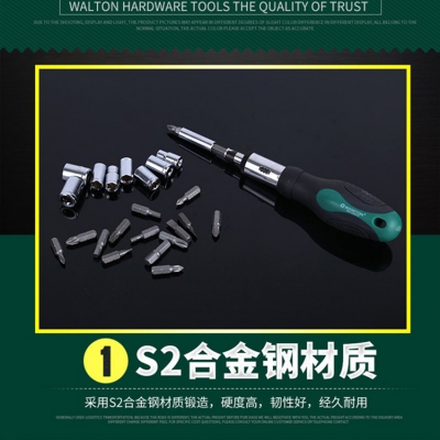 沃爾頓工具棘輪批頭組套刀頭附強磁,可吸附螺絲,多種規(guī)格,方便作業(yè)。