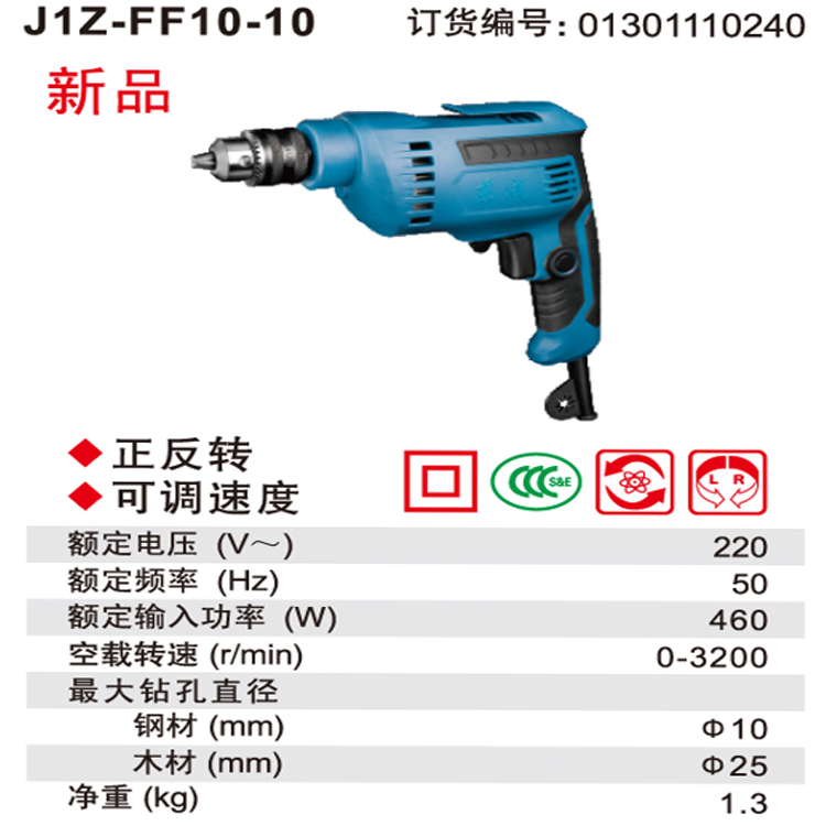 東成手電鉆J1Z-FF10-10除了緊固、拆卸螺絲外,還能在金屬、瓷磚、木材上鉆孔。