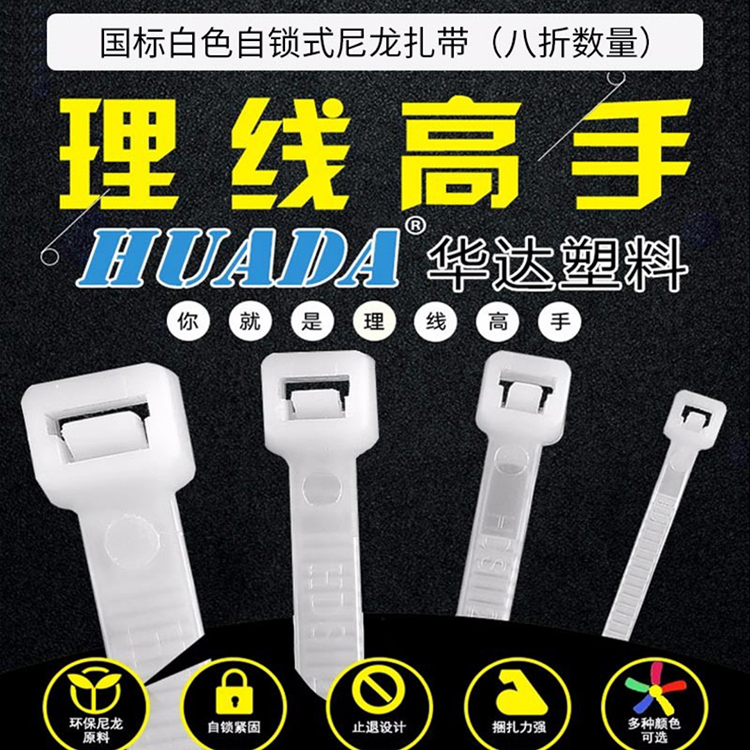 HUADA(華達(dá))國標(biāo)/白色自鎖式尼龍扎帶(八折數(shù)量)