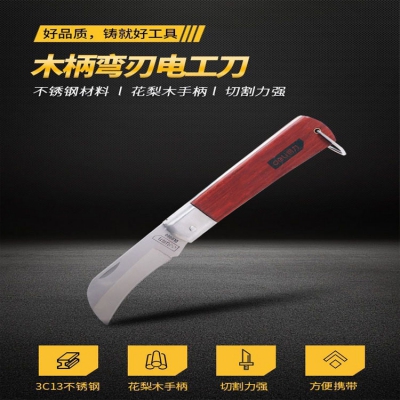 得力工具直嘴電工刀彎嘴電工刀木柄絕緣電線刀剝皮刀不銹鋼折疊刀