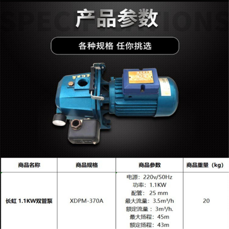 長虹1.1KW雙管泵作業(yè)效率高動力更強(qiáng)勁、應(yīng)用范圍廣、節(jié)約低耗電、省時省力。