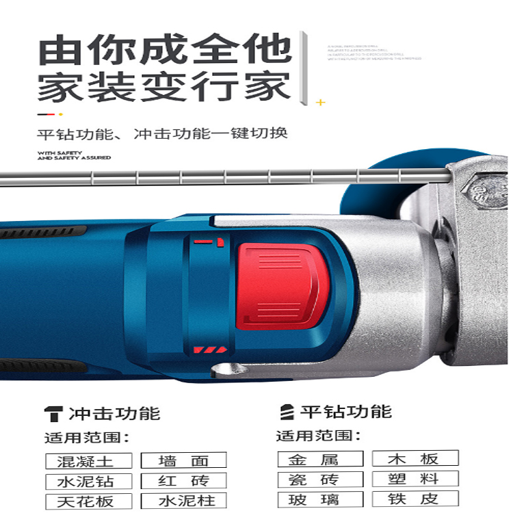 沖擊鉆模式下可以墻面,混凝土打孔;起子機(jī)模式下可以無傷上下擰螺絲等。