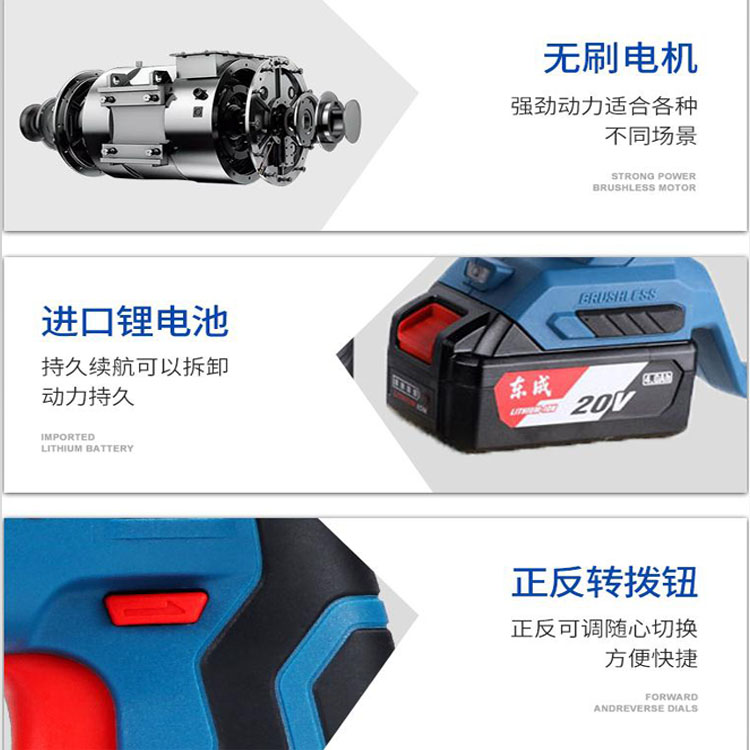 東成充電式電錘電機(jī)、電池、開關(guān)展示