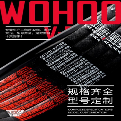 五湖 A型三角帶優(yōu)異性能的混合膠,伸張層、壓縮層。