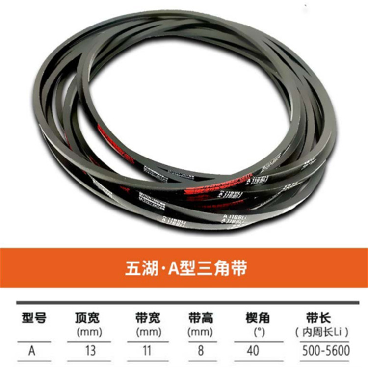 五湖 A型三角帶高強(qiáng)度、低伸長,耐磨、耐高溫等特點(diǎn)。