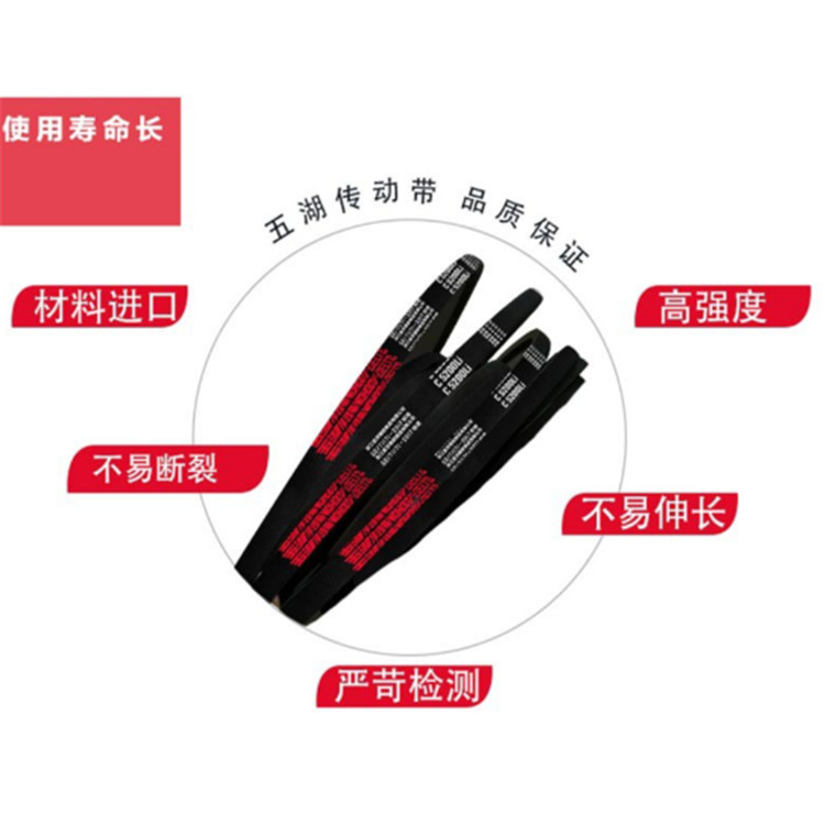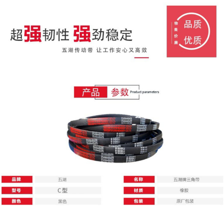 五湖 C型三角帶高強(qiáng)度、低伸長(zhǎng),耐磨、耐高溫等特點(diǎn)。