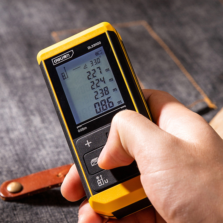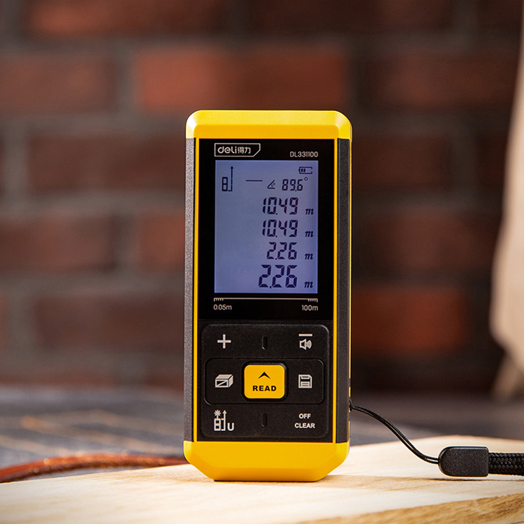 得力紅外線測距儀手持大屏鋰電激光測距儀充電高精度電子尺量房儀