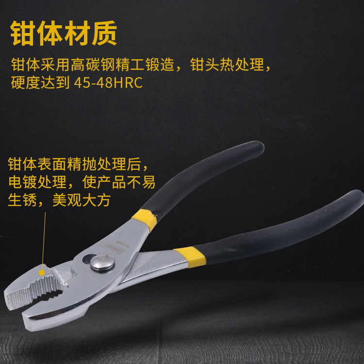 鯉魚鉗鉗體采用高碳鋼精工鍛造,鉗頭熱處理,硬度達(dá)到45-48HRC