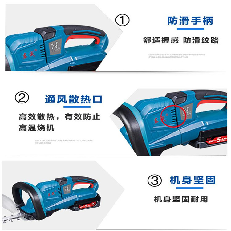 東成充電式無刷修枝剪人性防滑手柄設(shè)計(jì),握感舒適,通風(fēng)散熱口,有效防止高溫?zé)龣C(jī)