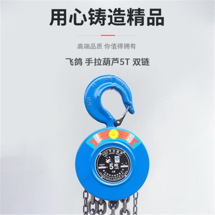飛鴿 手拉葫蘆5t 雙鏈從設(shè)計到選材,制作到組裝都是經(jīng)過嚴格把關(guān)。