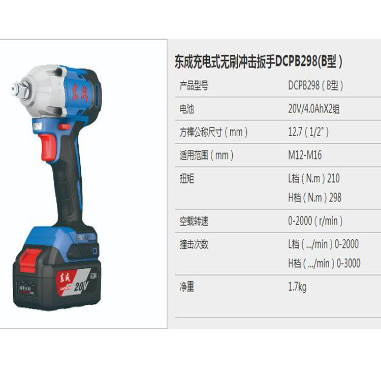 東成充電式無刷沖擊扳手DCPB298(B型)參數(shù)