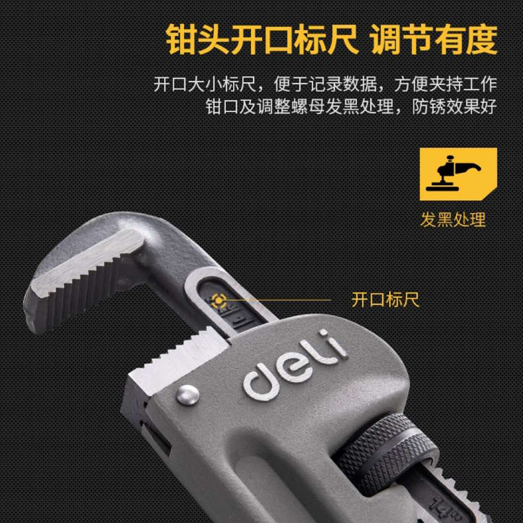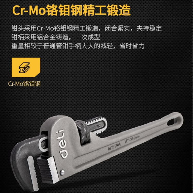 寧波得力鋁合金管子鉗DL105048工業(yè)級水管鉗直角活扳手安裝工具