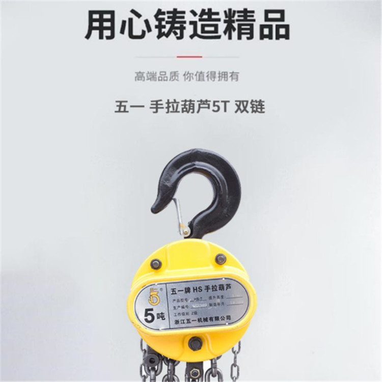 五一手拉葫蘆5T雙鏈比較輕巧,容易攜帶,適合移動式起重工作。