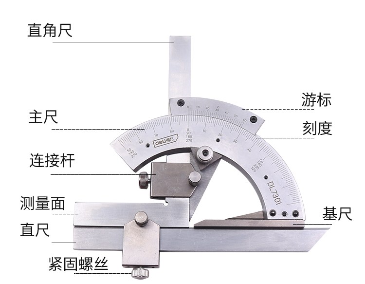得力萬能角度尺0-320度量角器角度規(guī)游標(biāo)角度尺角度測量