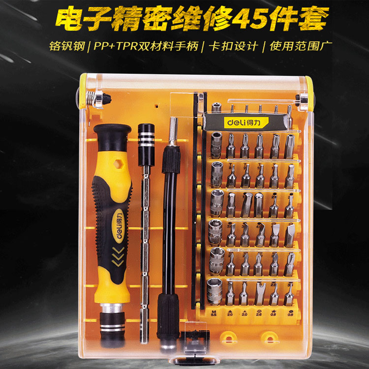 得力螺絲刀套裝小批頭十字梅花家用多功能手機維修工具組套45件套