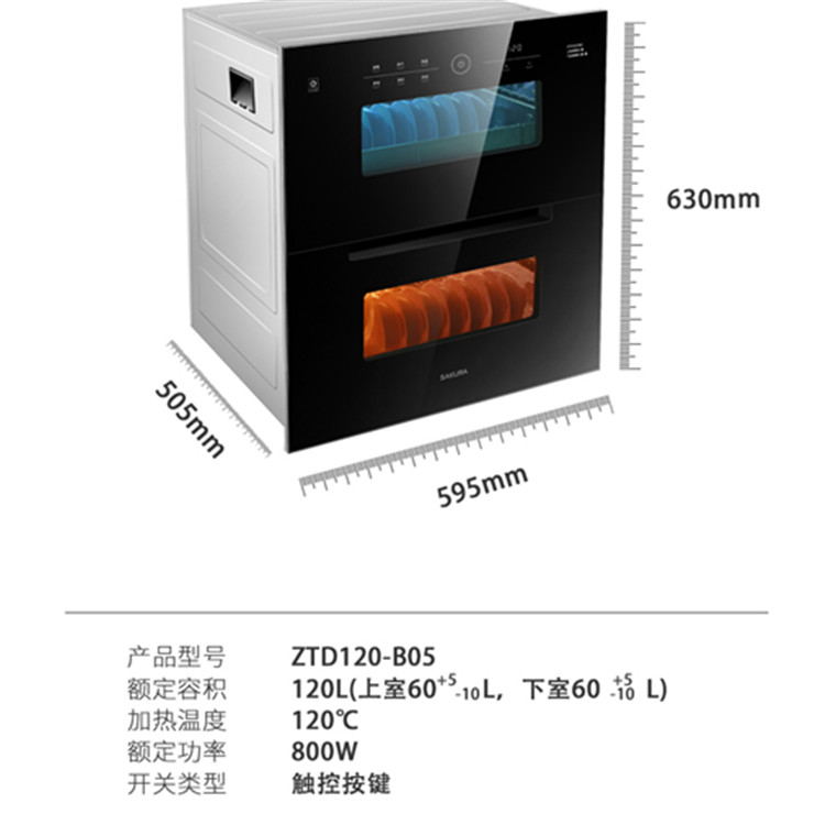 櫻花ZTD120-B05大容量消毒柜雙層雙軸全自動(dòng)消毒柜性能參數(shù)