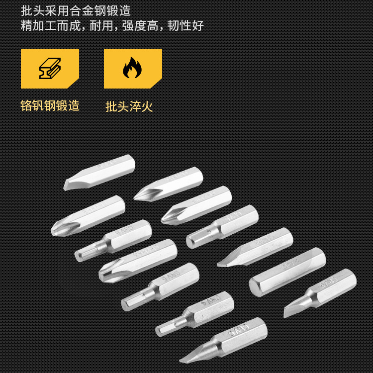 螺絲批批頭采用合金鋼鍛造,精加工而成,耐用,強(qiáng)度高,韌性好