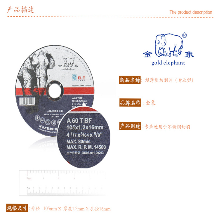 珠海大象超薄切割片專業(yè)適用于不銹鋼切割。