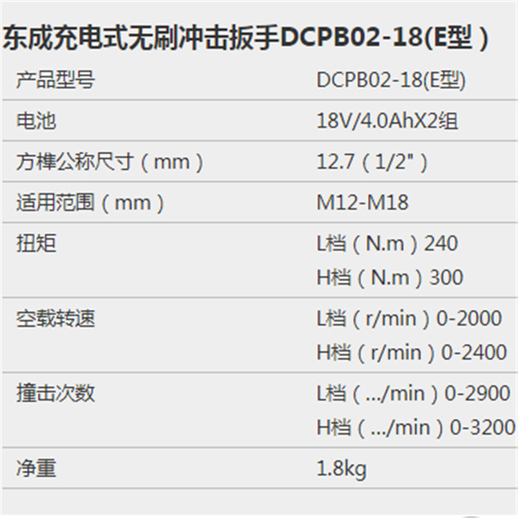 東成充電式無(wú)刷沖擊扳手DCPB02-18(E型)