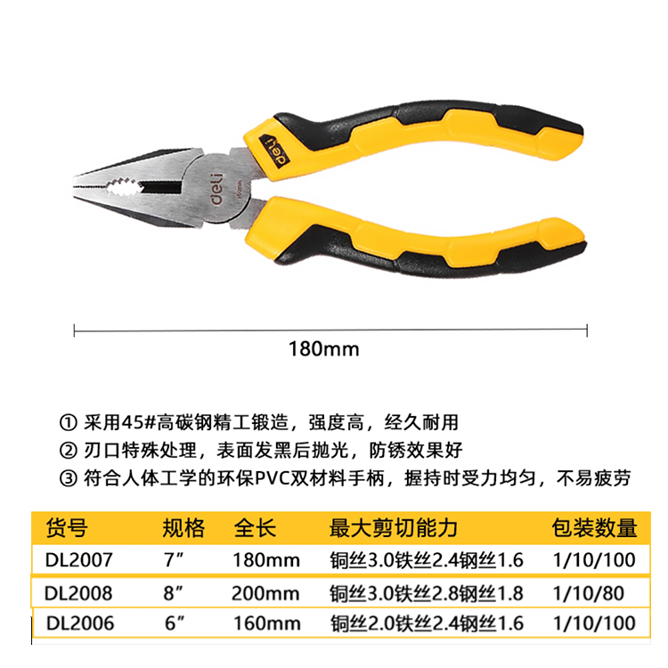 寧波得力鋼絲鉗DL2008老虎鉗平口鉗綜合鉗高碳鋼斷線鉗子